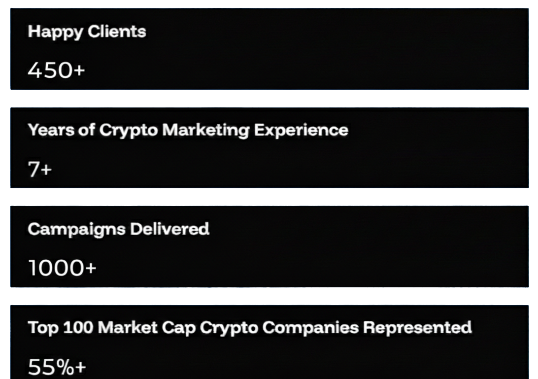 A crypto marketing agency does more than run ads. It builds the trust, visibility, and community your project needs to grow in one of the most competitive and skeptical markets in the world. Here is how we do it.